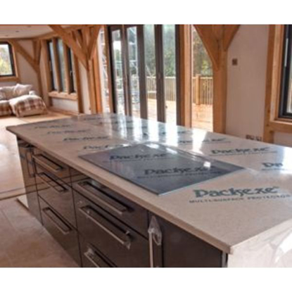 Selvheftende folie for beskyttelse av gulv. Blå folie er til bruk på tekstilgulv, og grønn folie er beregnet for harde gulv. Med dispenser dekkes raskt og sikkert, store arealer og beskytter mot fukt, smuss og skader.