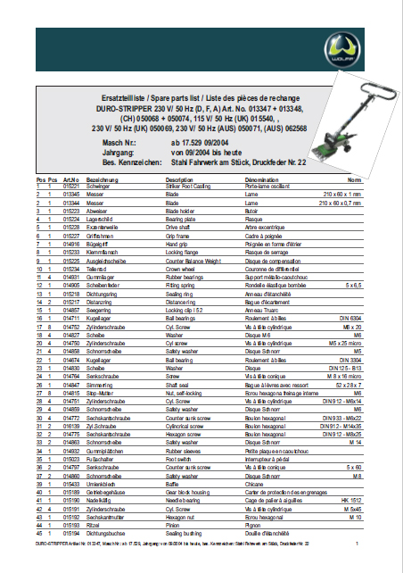 Her finner du PDF oversikt over deletegninger for Wolff Duro stripper: