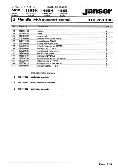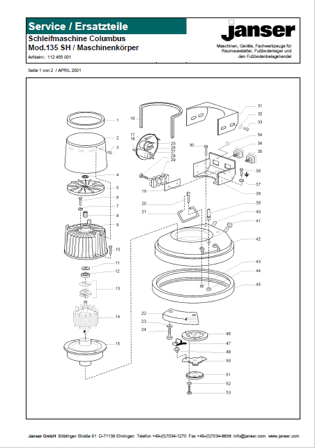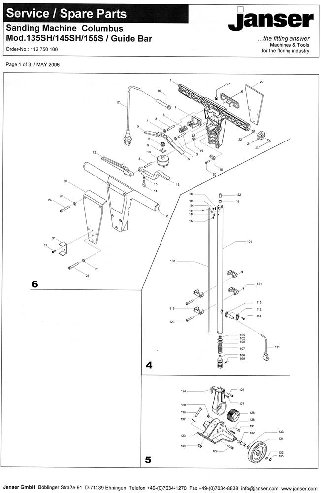 Her finner du PDF med oversikt over deletegninger for Columbus Slipemaskin 145 sh: