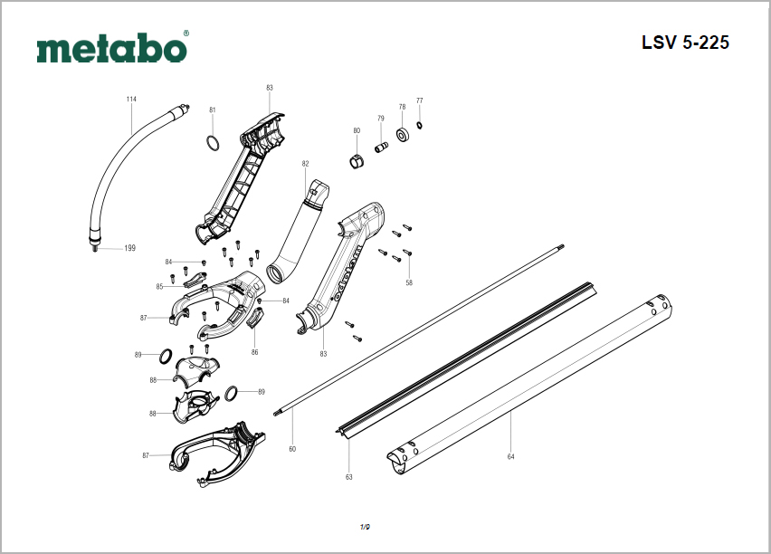 Her finner du PDF med oversikt over deletegninger for Giraffsliper Metabo LVS 5-225 500w: