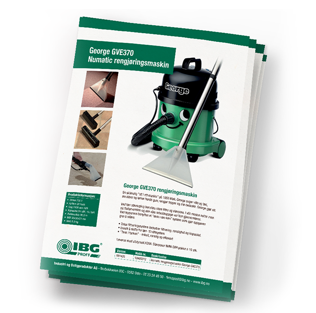 En skikkelig ”alt i ett maskin” på 1060 Watt. George suger vått og tørt, skrubber og tørker harde gulv, rengjør tepper og møbeltrekk. George gjør alt.