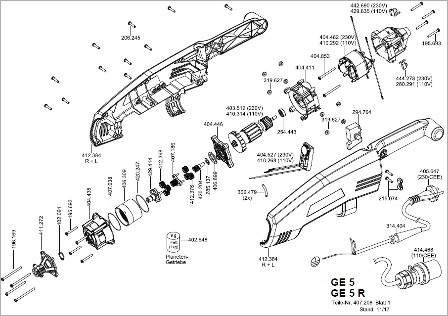 Her finner du PDF med oversikt over deletegninger for Giraff Flex GE 5: