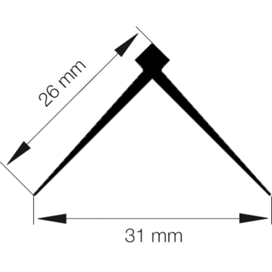 PVC-list for å beskytte hjørnet av tapeten. 26 x 26 mm.