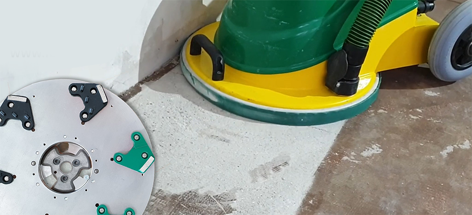 Scrabber GREEN med et bredt PCD-segment for mild fjerning av rester av elastisk lim, priming-materialer/nivelleringsforbindelser, maling og strie.