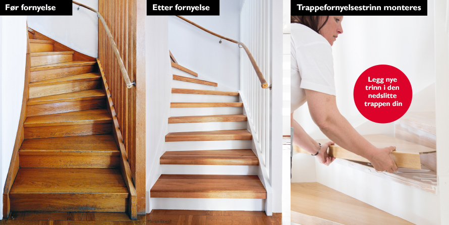 Trappen din blir stadig mer nedslitt med årene. Samtidig har trender ført til at trappen betraktes som en viktig del av hjemmets interiør. Spar både tid og penger ved å velge fornyelse av trappen i stedet for å bytte den ut med en ny. Konseptet vårt for trappefornyelse inneholder noen få komponenter og gjør at løsningen fungerer uansett om trappen er åpen, lukket, rett eller buet. Delenes utforming og metoden for fornyelse er egnet for både håndverkere og hobbysnekkere. Ta skrittet nå og oppnå et enestående sluttresultatet med materialer som varer i mange år.