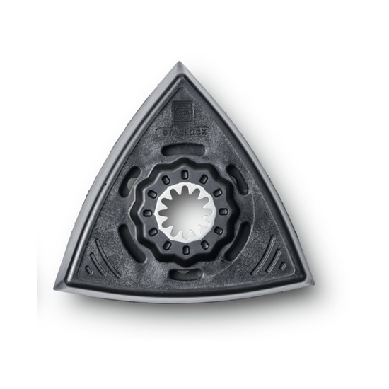 FEIN Slipeplate 3-kant med hull SL A2. Kantlengde 80 mm. For sliping helt inn i hjørner, smale åpninger og andre vanskelig tilgjenglige steder som ellers må håndslipes. Slipeplaten vibrerer med 12-21 000 svingn. pr. min. Kan også brukes på plast og metall. Med slipeplate med borrelås og 20 slipepapir i ass. korninger, 1 stiv sparkel, 1 E-cut sagblad 335 mm, 1 HSS-segment sagblad, 1 hardmetall-segments sagblad.