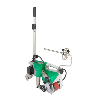 Gulvleggerkoffert light m/Leister Triac ST. Inneholder fugekniv med lite rundt blad,Blad for fuging (spiss ende),Blad for renskjæring (stort rundt),*Blad for renskjæring (flat ende),*Trykkjern f/innv.hjørner,*Trekantskrape,*Trykkrulle bøyd kompakt hjul.