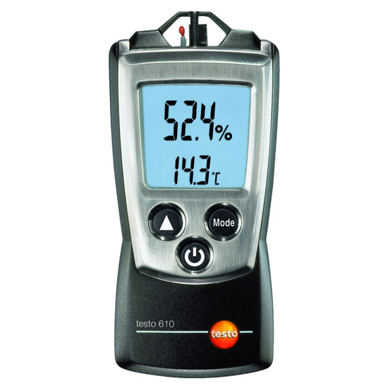 Måler luftfuktighet og temperatur i rommet f.eks før legging av parkett. +/- 2,5% RF nøyaktighet med kalibrerngsrapport. Med beregning av duggpunkt og våt temperatur. Holdfunksjon samt maks/min. verdier.