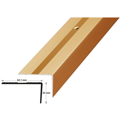 Trappenese med mål 42 x 22 mm. Trappeneser beskytter trappeforkant og virker sklihemmende. Trappeneser med skruer monteres ved hjelp av forborede hull og medfølgende skruer. Listene er også lette å kappe i ønsket lengde. Leveres i butikkforpakning.