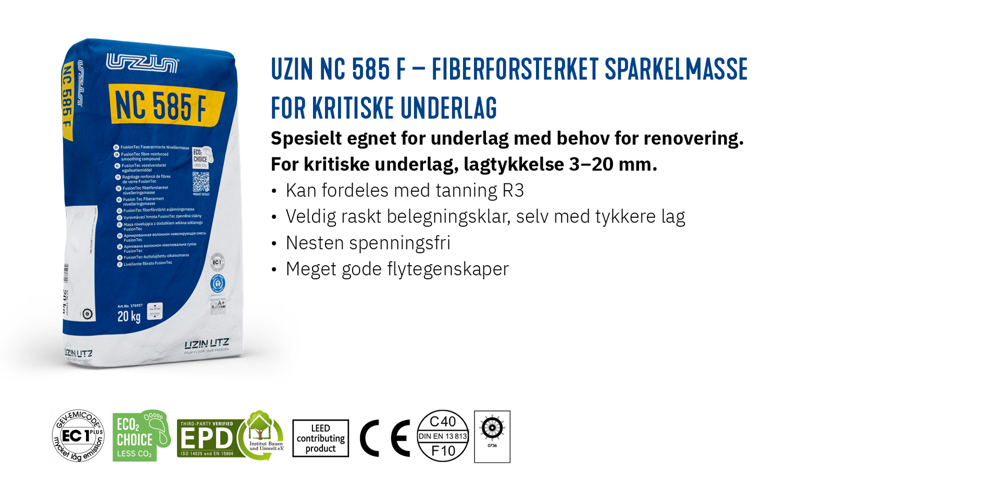 De nye UZIN FusionTec avrettings- og sparkelmasser er nesten spenningsfrie og perfekte på underlag ved renovering. Selv ved tykke lag eller ugunstige klimaforhold utmerker UZIN FusionTec-sortimentet seg, da det raskt og pålitelig blir klart for belegging. Det omfattende UZIN FusionTec-sortimentet er utviklet for å dekke et bredt spekter av bruksområder og oppfyller nesten ethvert krav på stedet, med den velkjente kvaliteten du får fra UZIN.